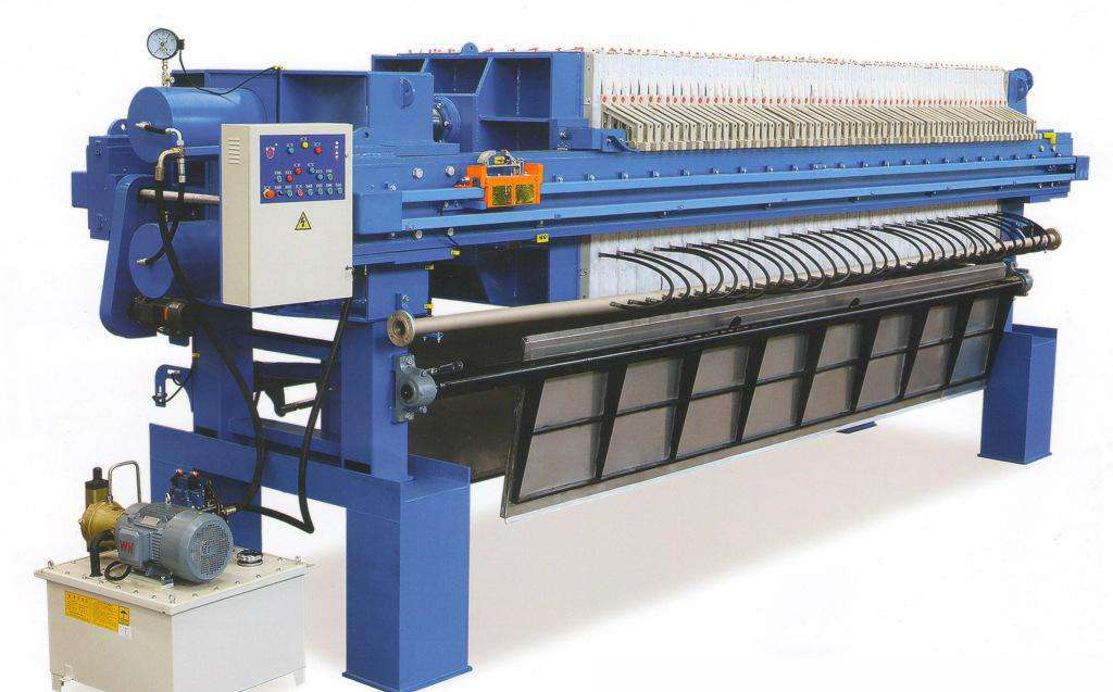 板框壓濾機(jī)(板框式壓濾機(jī))由交替排列的濾板和濾框構(gòu)成一組濾室。濾板的表面有濾點(diǎn),其凸出部位用以支撐濾布。濾框和濾板的邊角上有通孔,組裝后構(gòu)成完整的通道,能通入懸浮液、洗滌水和引出濾液。
